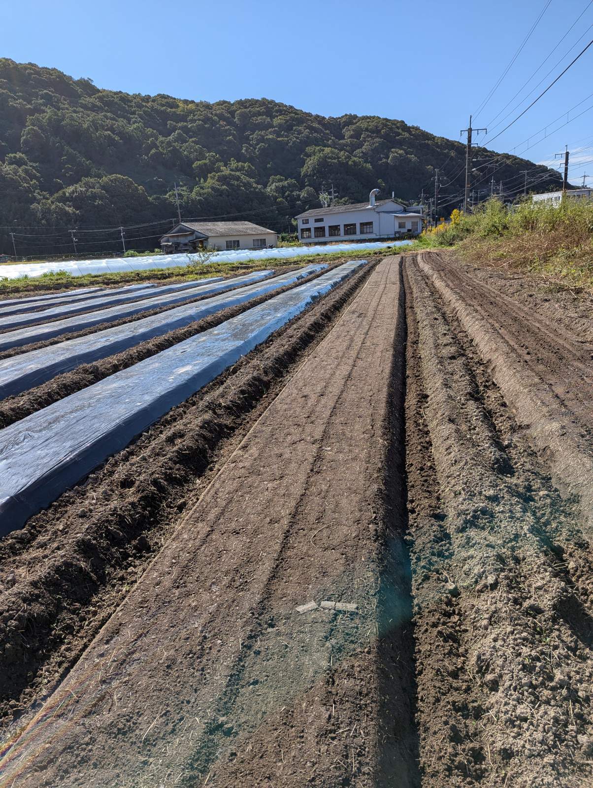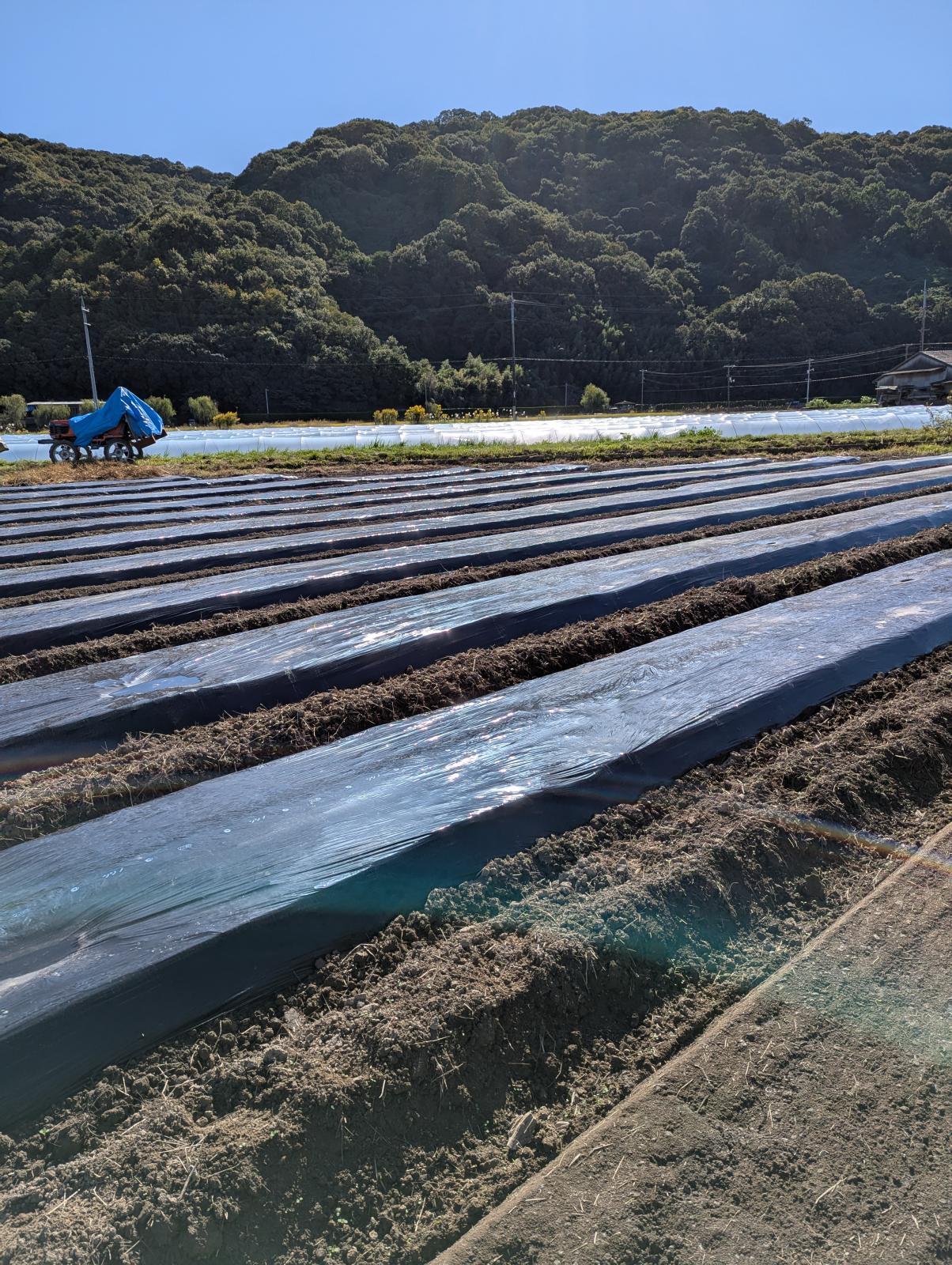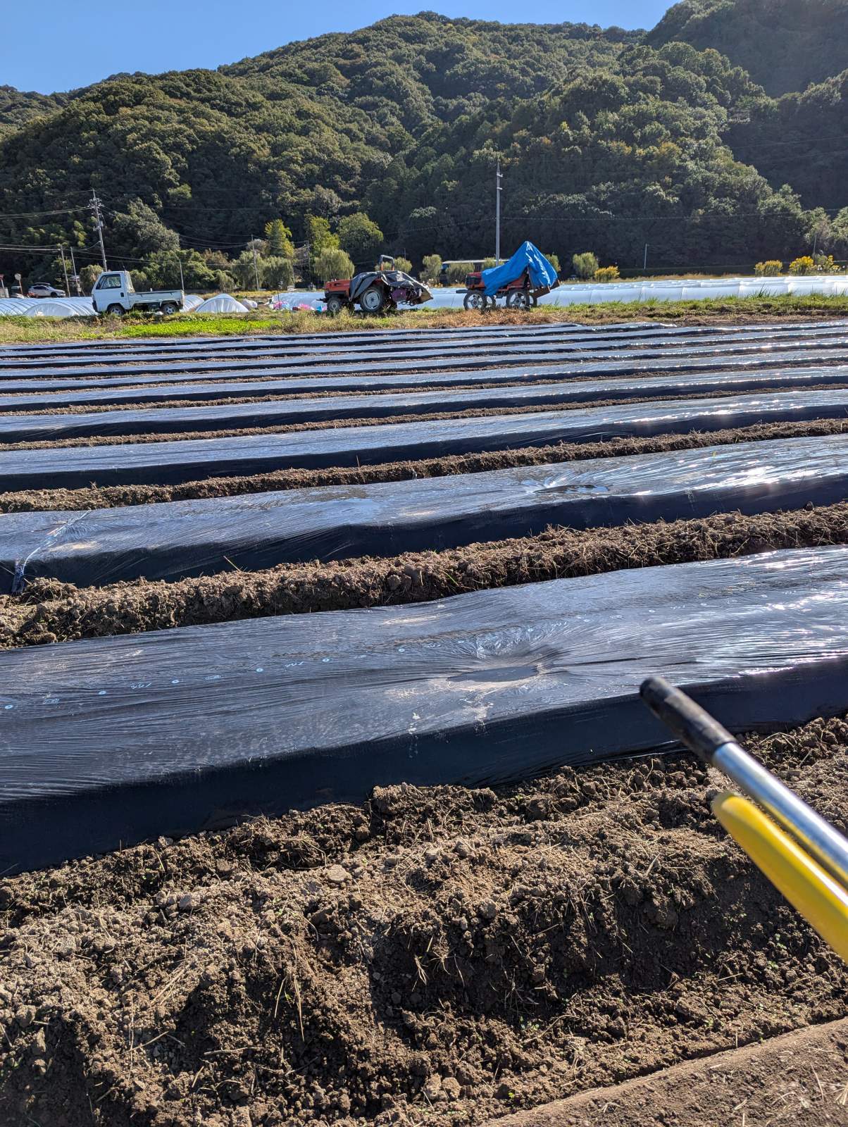 黒マルチで雑草対策もばっちり👌(写真はちょっぴりわかりにくいですが、種まき後の様子です📸)